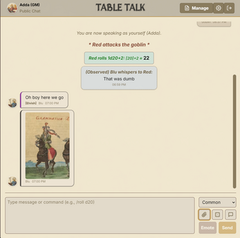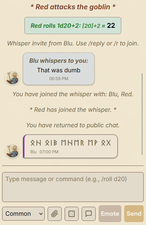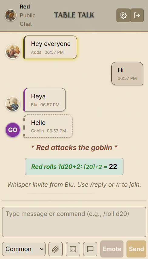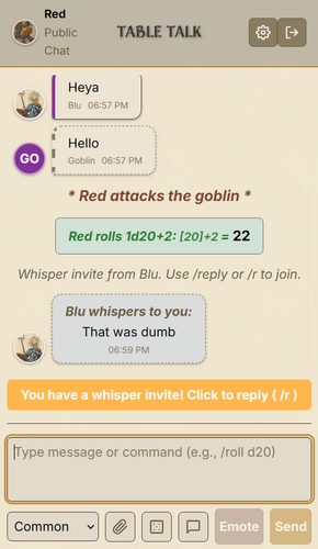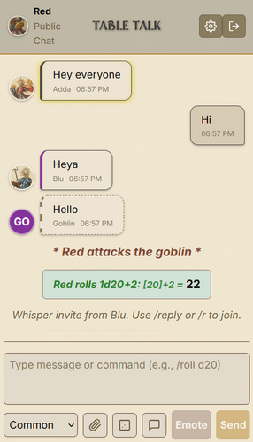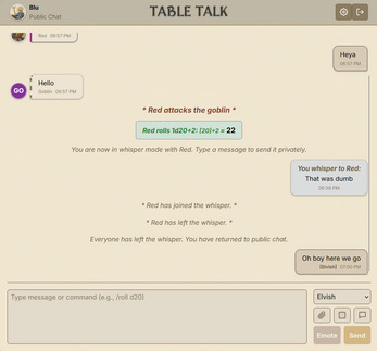 - Empowered Table Talk: Send messages to the GM while other players are speaking to each other